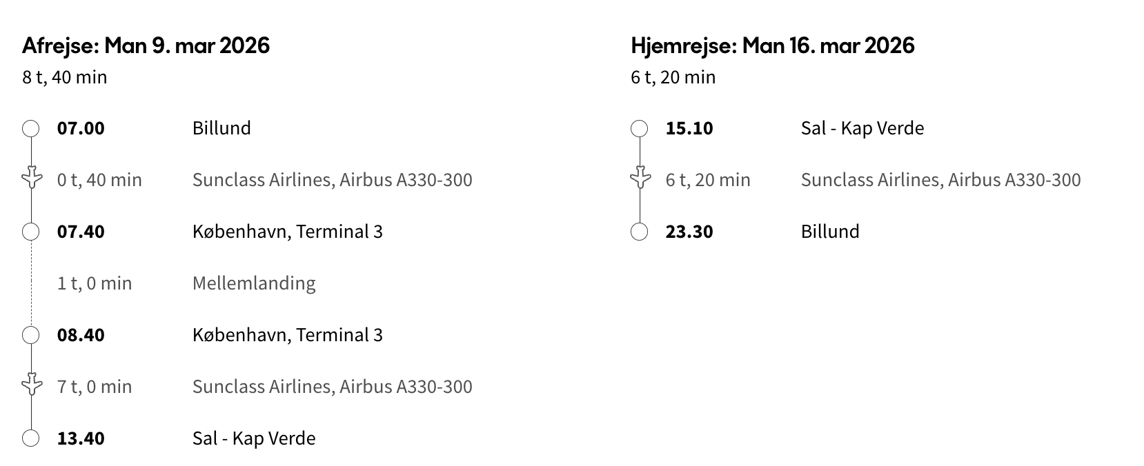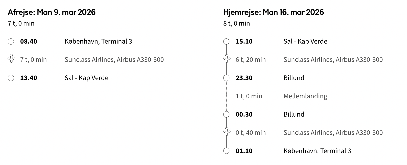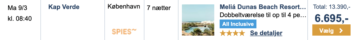 Hvis rejsen er med “Vis rejse” link, så er der tale om en pakkerejse, hvor fly og hotel bestilles på en gang.