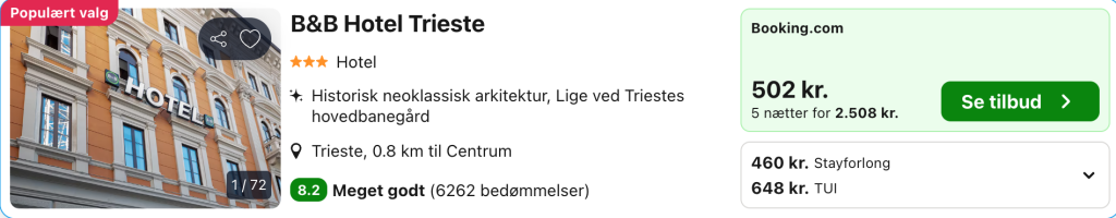 6 dage i Trieste for kun 1.510,- per person inkl. fly og godt 3-stjernet hotel med central beliggenhed!