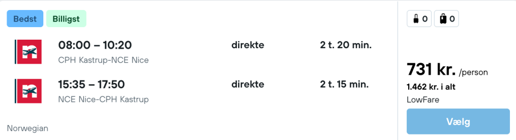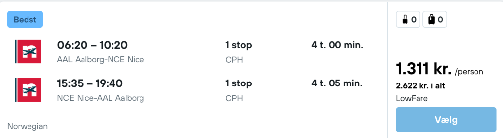 Flyprisen inkluderer kun en lille taske, men bagage kan tilkøbes.