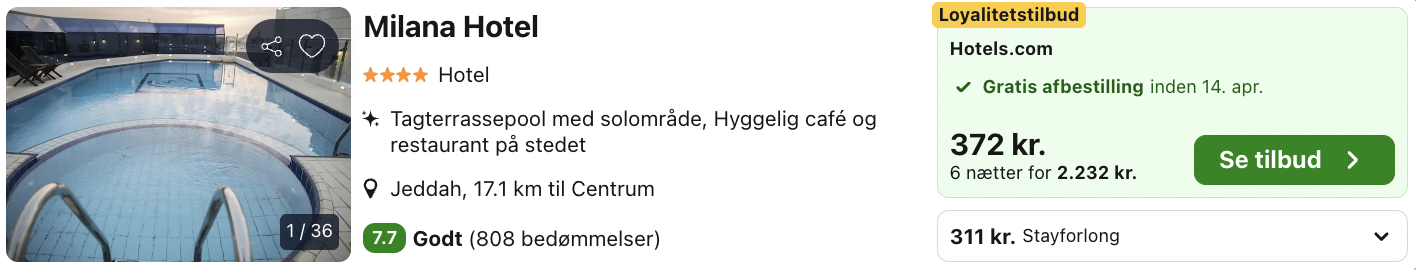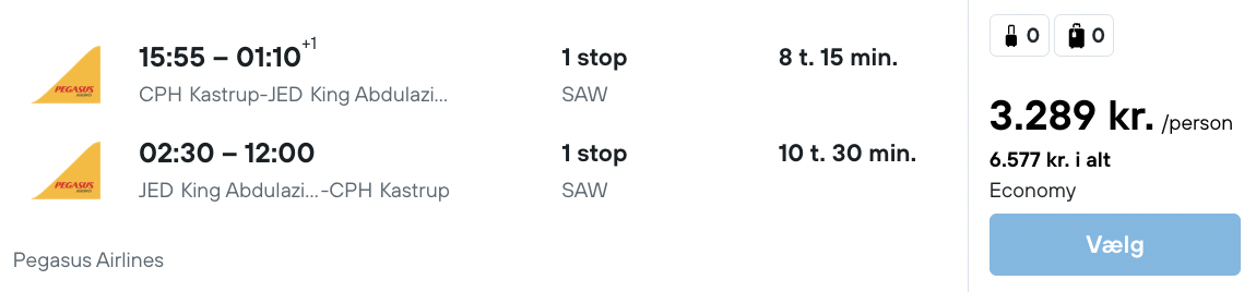 På vores flysøgningsmaskine har vi fundet flybilletter fra København til Jeddah i Saudi-Arabien: