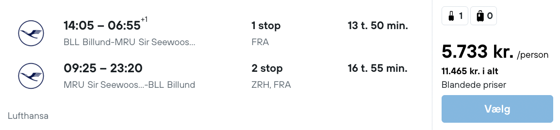 Vi har fundet billige fly fra København og Billund til Mauritius: