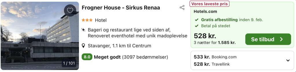 Hvis rejsen er med “Vis rejse” link, så er der tale om en pakkerejse, hvor fly og hotel bestilles på en gang.