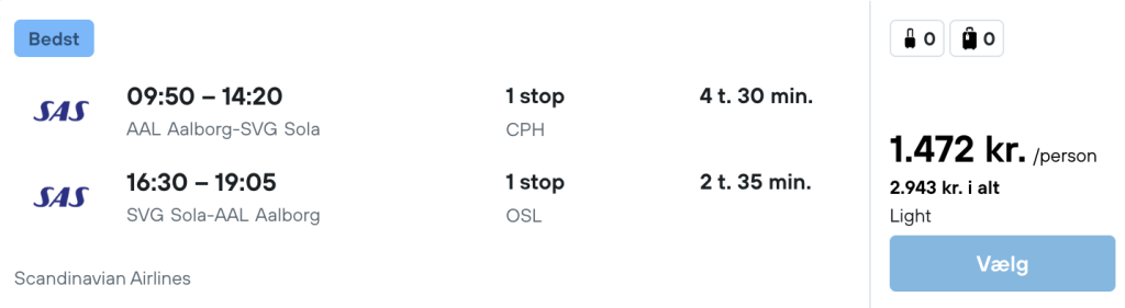 På vores flysøgningsmaskine har vi fundet billige flybilletter fra København og Aalborg til Stavanger:
