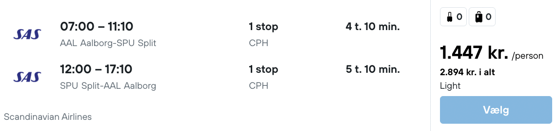På vores flysøgningsmaskine har vi fundet billige flybilletter fra København, Billund og Aalborg til Split: