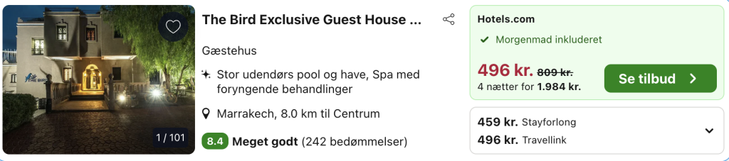 Hvis rejsen er med “Vis rejse” link, så er der tale om en pakkerejse, hvor fly og hotel bestilles på en gang.