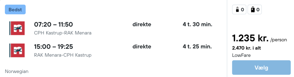 På vores flysøgemaskine har vi fundet billige flybilletter fra København til Marrakech: