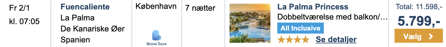 På Travelmarket har vi fundet et gode tilbud med Bravo Tours fra København til La Palma: