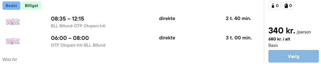 På vores flysøgemaskine har vi fundet billige fly fra Billund og København til Bukarest: