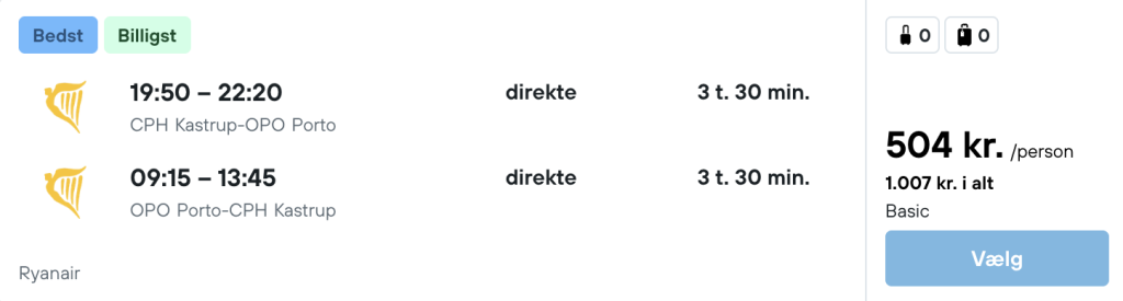 Vi har fundet billige flybilletter fra København til Porto: