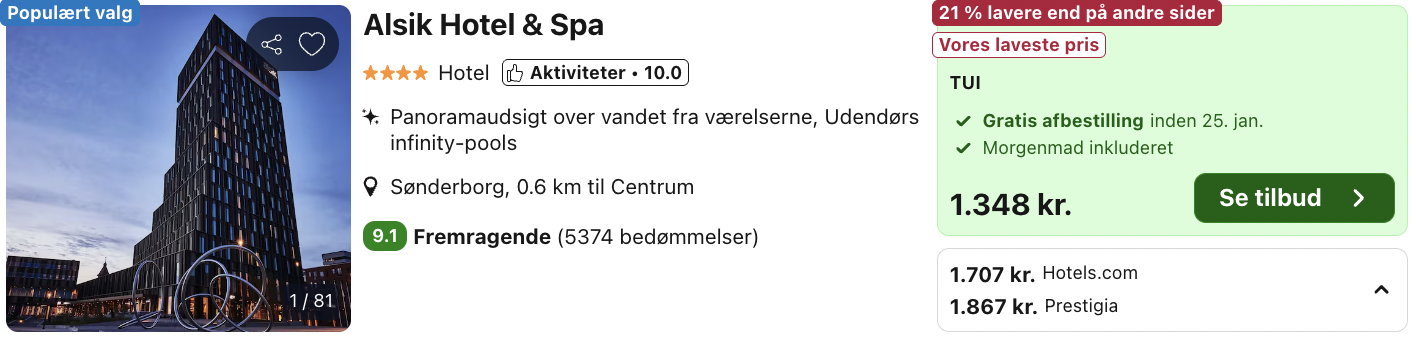 Bemærk: Prisen for opholdet er 1.562,- for 2 personer i et dobbeltværelse, hvilket svarer til 781,- per person. Der er flere alternative datoer til samme billige priser. Se et udvalg længere nede på siden.