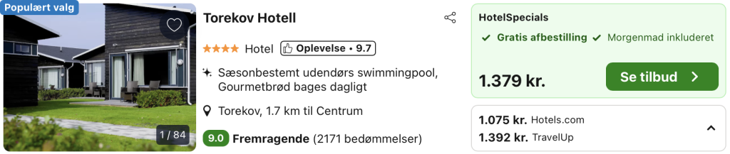 | I ALT | 709,- | Pris pr. person ved 2 personer |