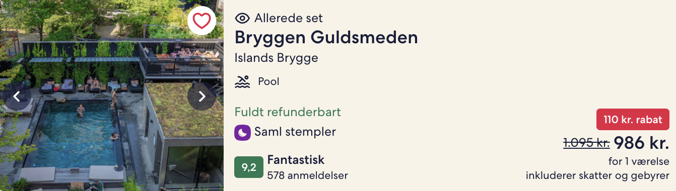 Bemærk: Den samlede pris for opholdet er 986,- for 2 personer i et dobbeltværelse, hvilket svarer til 493,- per person. Der kan være mindre prisforskelle på mobil og pc. Undersøg med fordel, hvor det er billigst inden bestilling. Rejs365 er ikke et rejsebureau, men en rejseside, der finder gode tilbud! – Vi modtager kommission, men det påvirker ikke din pris! Læs mere her |
