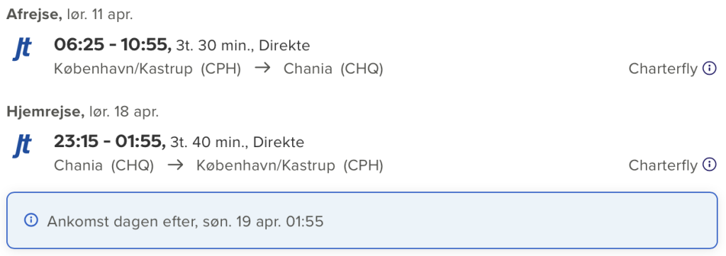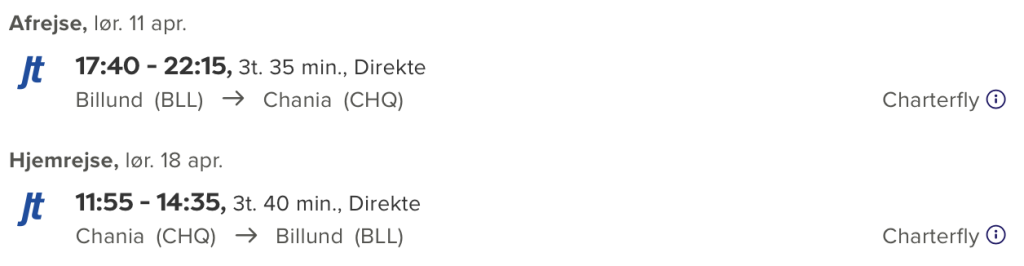Hvis rejsen er med “Vis rejse” link, så er der tale om en pakkerejse, hvor fly og hotel bestilles på en gang.