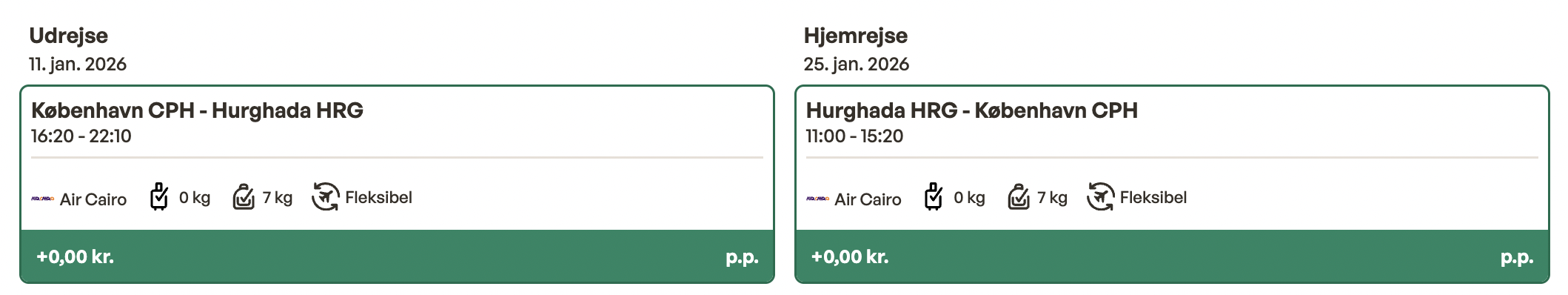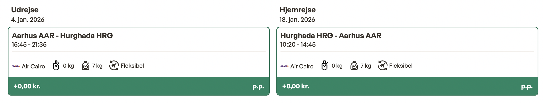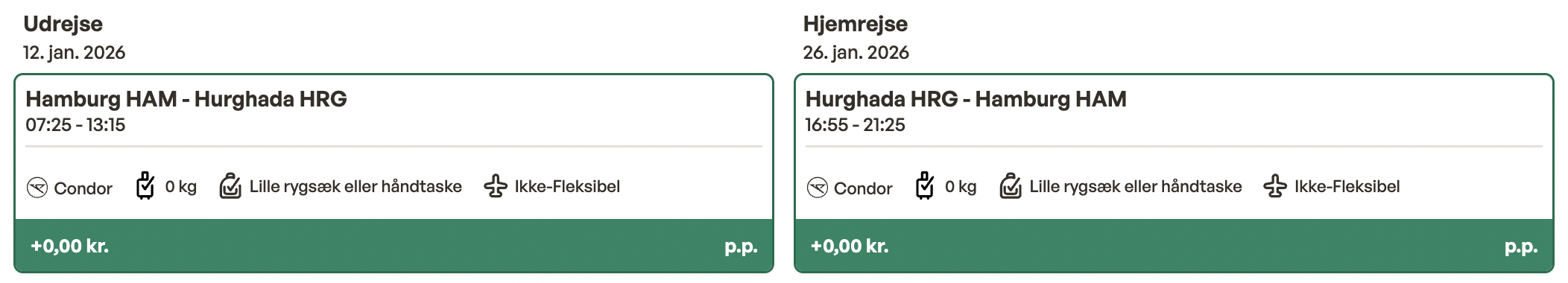 Hvis rejsen er med “Vis rejse” link, så er der tale om en pakkerejse, hvor fly og hotel bestilles på en gang.