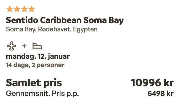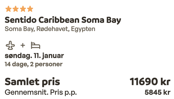 Bemærk: Sunweb viser den samlede pris for 2 personer.