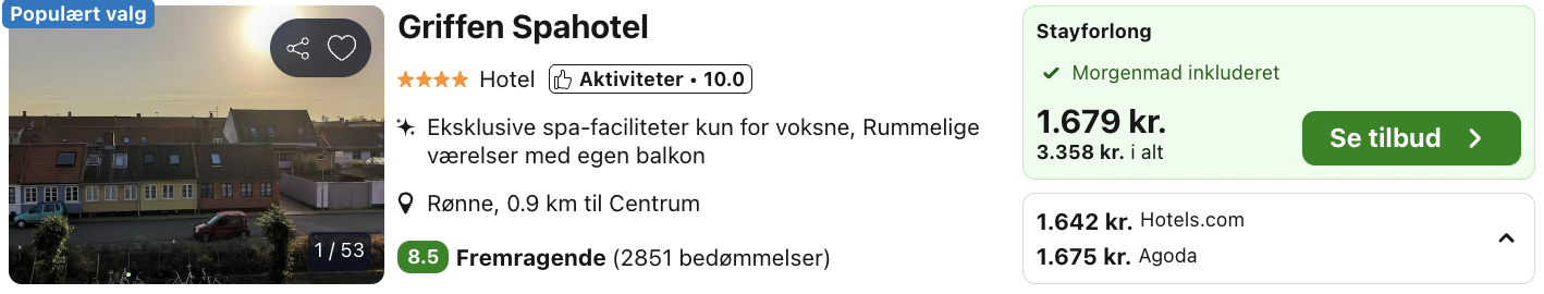 3 dages forlænget valentinsdagsweekend på Bornholm på det flotte Griffen Spa Hotel for kun 1.642,- inkl. morgenmad og adgang til spa!