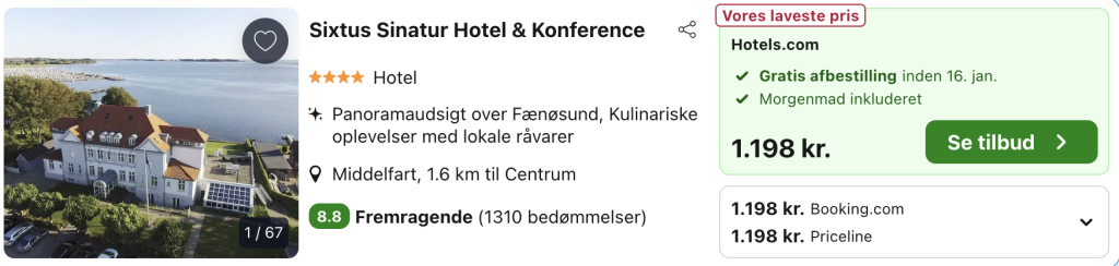 Bemærk: Den samlede pris for opholdet er 1.198,- for 2 personer i et dobbeltværelse, hvilket svarer til 599,- per person. Rejs365 er ikke et rejsebureau, men en rejseside, der finder gode tilbud! – Vi modtager kommission, men det påvirker ikke din pris! Læs mere her |