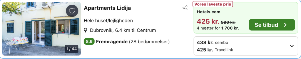 5 dage ved Dubrovnik for kun 1.607,- per person inkl. fly og godt lejlighedshotel med god beliggenhed!