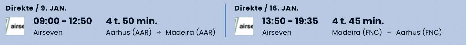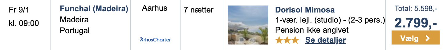 Hos Travelmarket har vi fundet et godt tilbud med Aarhus Charter fra Aarhus til Madeira: