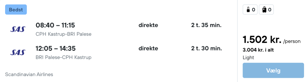 Flyprisen inkluderer kun en lille taske, men bagage kan tilkøbes.
