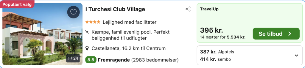 Hvis rejsen er med “Vis rejse” link, så er der tale om en pakkerejse, hvor fly og hotel bestilles på en gang.