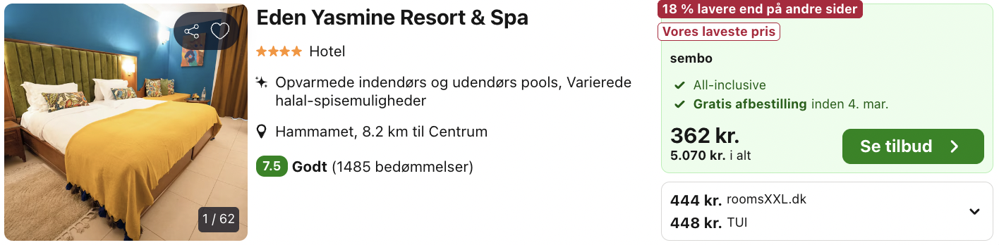 | Bemærk: Husk at lade søgningen blive helt færdig. Vælg “Vores laveste pris” på trivago, for at opnå den bedste pris på hotellet.