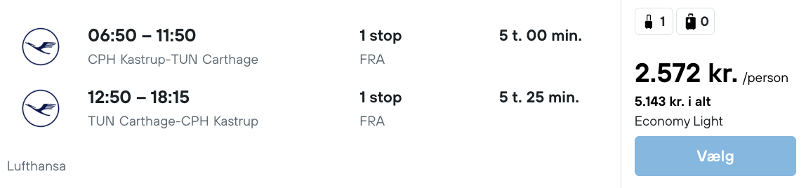 Hvis rejsen er med “Vis rejse” link, så er der tale om en pakkerejse, hvor fly og hotel bestilles på en gang.