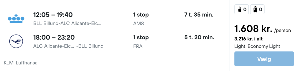 Flyprisen inkluderer kun en lille taske, men bagage kan tilkøbes.