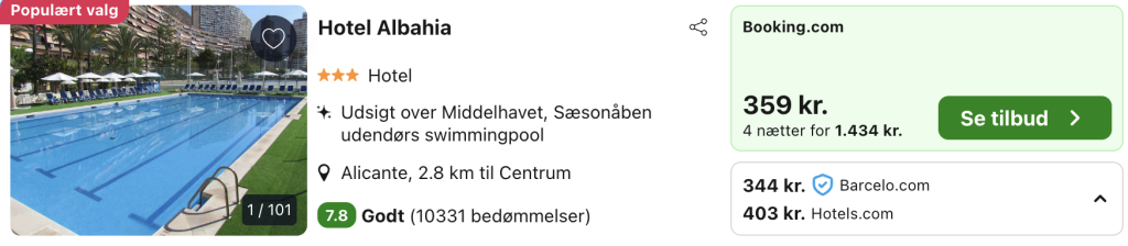 Hvis rejsen er med “Vis rejse” link, så er der tale om en pakkerejse, hvor fly og hotel bestilles på en gang.