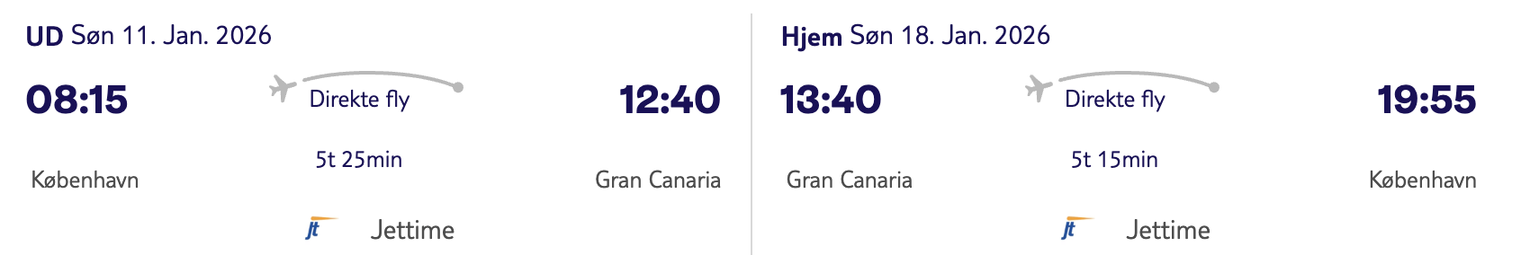 Hvis rejsen er med “Vis rejse” link, så er der tale om en pakkerejse, hvor fly og hotel bestilles på en gang.