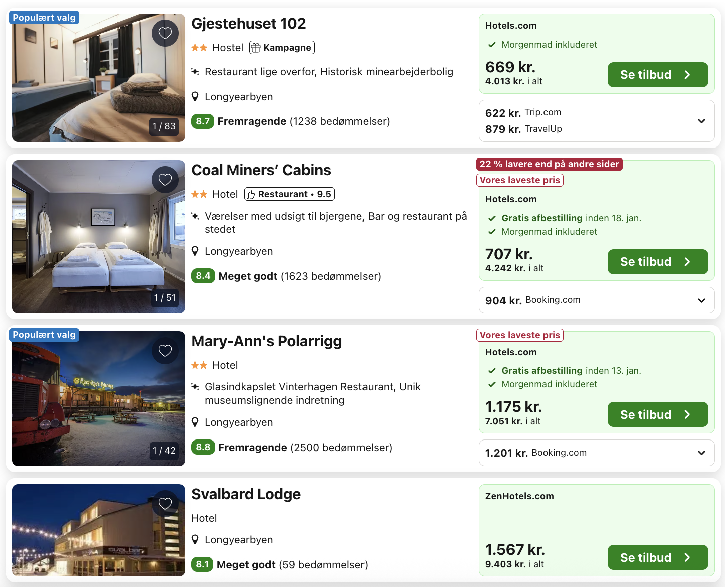 På vores flysøgningsmaskine har vi fundet billige flybilletter fra København til Svalbard: