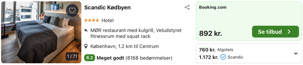 Husk at logge ind / oprette en gratis bruger på trivago samt hos Agoda. Derved opnås den bedste pris!