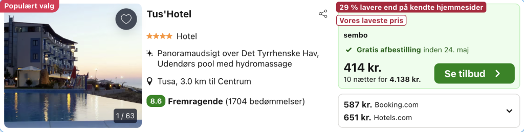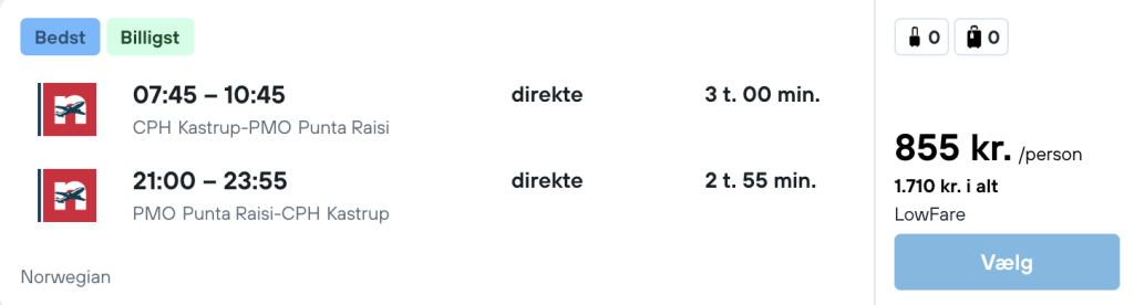 Hvis rejsen er med “Vis rejse” link, så er der tale om en pakkerejse, hvor fly og hotel bestilles på en gang.