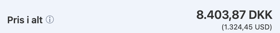 | I ALT | 8.449,- | Pris pr. person ved 2 personer |