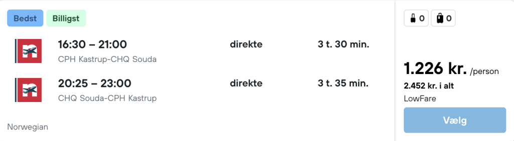 Flyprisen inkluderer kun en lille taske, men bagage kan tilkøbes.