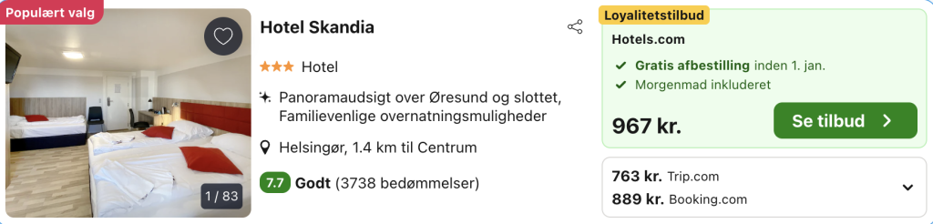 Weekendophold i hyggelige Helsingør for kun 382,- per person inkl. godt hotel med morgenmad og central beliggenhed.