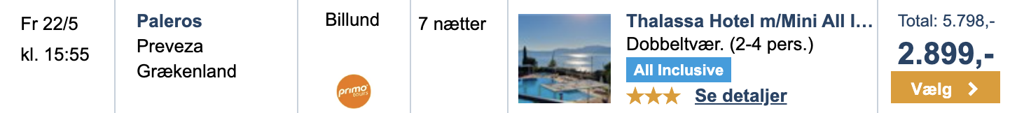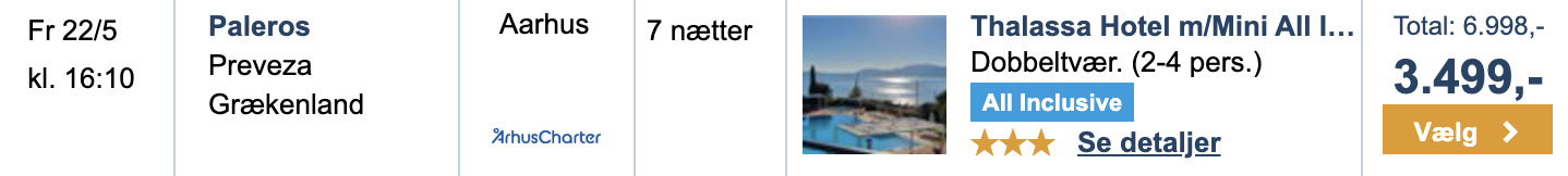 Hvis rejsen er med “Vis rejse” link, så er der tale om en pakkerejse, hvor fly og hotel bestilles på en gang.