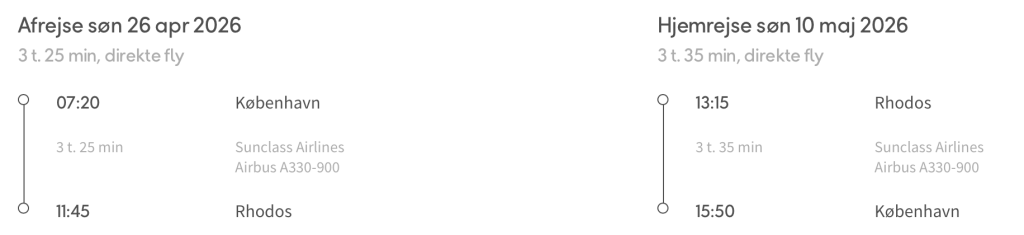 Hvis rejsen er med “Vis rejse” link, så er der tale om en pakkerejse, hvor fly og hotel bestilles på en gang.
