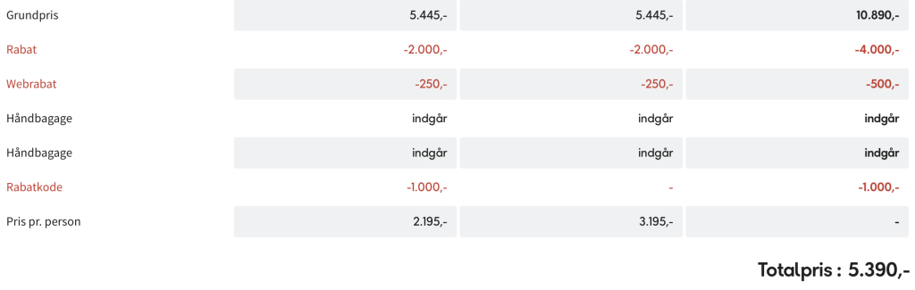 Prisen tager udgangspunkt i 2 personer. Man kan sagtens rejse flere voksne og eller med børn og derved typisk opnå en billigere pris pr. person.