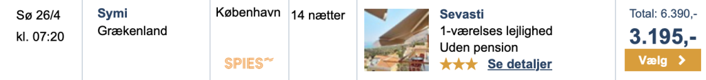 På Travelmarket har vi fundet et godt tilbud med Spies fra København til Symi: