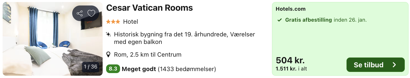 Hvis rejsen er med “Vis rejse” link, så er der tale om en pakkerejse, hvor fly og hotel bestilles på en gang.