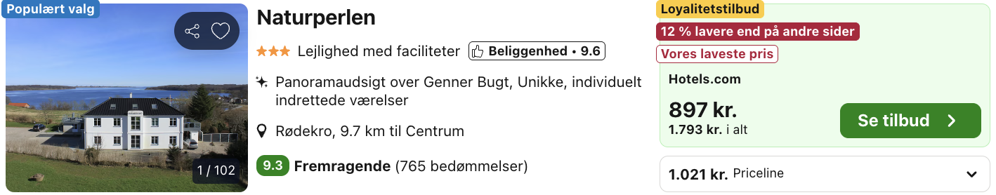 Vælg Hotels.com på trivago og log ind / opret en gratis bruger. Derved opnås den billigste pris.