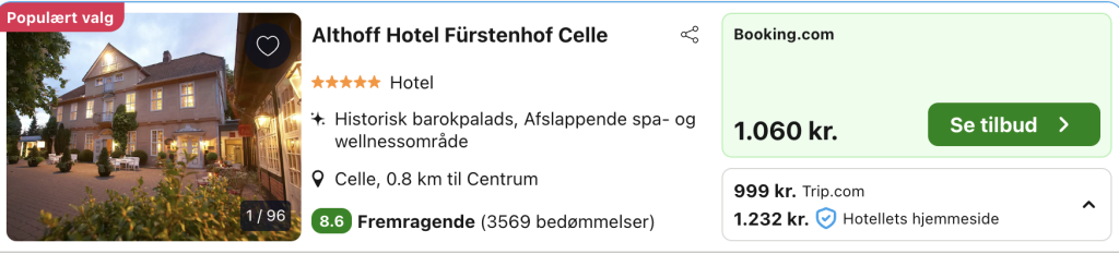 Althoff Hotel Fürstenhof i Celle er indbegrebet af klassisk luksus og historisk atmosfære. Hotellet ligger i en fortryllende barokbygning fra 1600-tallet og byder på en oplevelse, hvor charme, elegance og forkælelse går hånd i hånd. Her bor du midt i Celles hyggelige gamle bydel, omgivet af brostensbelagte gader og smukke bindingsværkshuse, og med det eventyrlige slot lige om hjørnet.
