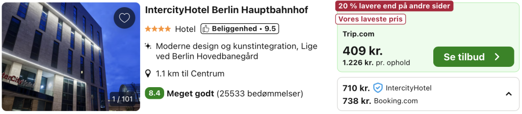 IntercityHotel Berlin Hauptbahnhof ligger særdeles centralt i Berlin, lige ved hovedbanegården og i kort afstand til floden Spree, regeringskvarteret og byens mange seværdigheder. Hotellet har en moderne og funktionel indretning med lyse, komfortable værelser, gode senge og et roligt udtryk, som gør det velegnet til både forretningsrejsende og storbyturister. Den centrale placering gør hotellet til en ideel base for at opleve Berlin til fods eller med offentlig transport.