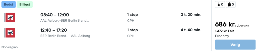 På vores flysøgemaskine har vi fundet billige flybilletter fra København og Aalborg til Berlin: