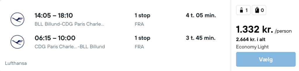 På vores flysøgemaskine har vi fundet billige flybilletter fra København og Billund til Paris.
