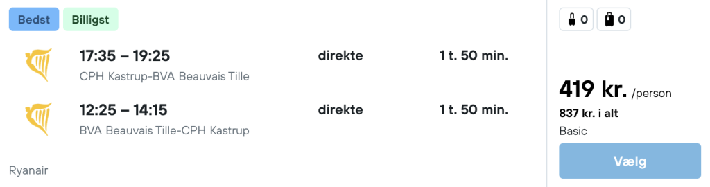 Tjek altid datoerne for at se om de passer sammen før du bestiller, da vi kan have begået fejl. Tjek derudover også prisen på begge ting før du bestiller det ene, da prisen kan have ændret sig. Der kan også være små variationer i prisen mellem mobil og pc.