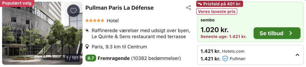 Bemærk: Der kan være mindre prisforskelle på mobil og pc. Undersøg med fordel, hvor det er billigst inden bestilling. Vælg “Vores laveste pris” på trivago, for at opnå den bedste pris på hotellet.