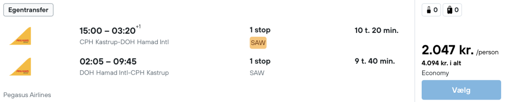 På vores flysøgemaskine har vi fundet billige flybilletter fra København til Doha: