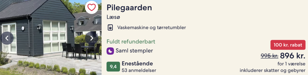 Vælg hotels.com på trivago og log ind / opret en gratis bruger. Derved opnås den billigste pris.
